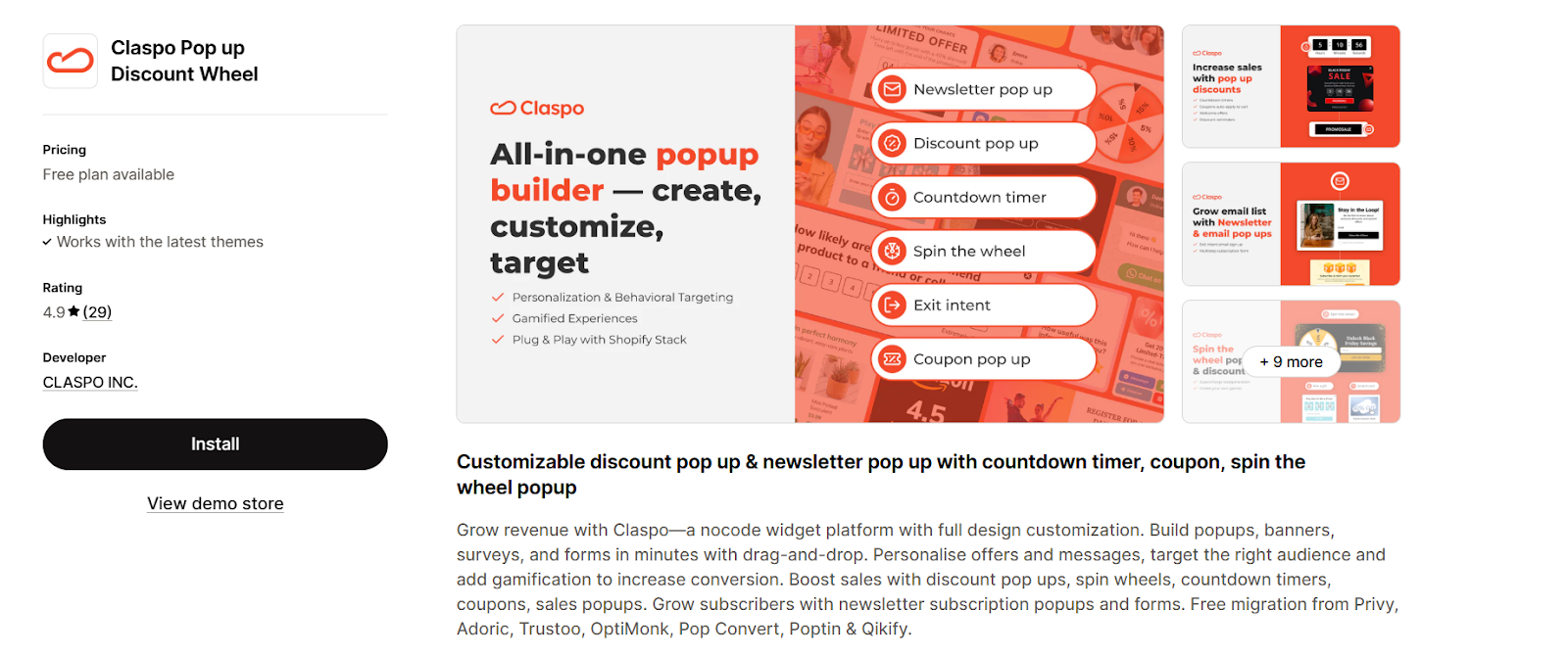 Claspo helps Shopify stores turn visitors into buyers with personalized onsite pop-ups. Built for brands that want more than “just pop-ups,” Claspo matches each visitor with the right message at the right moment driving conversions through intent-based targeting.