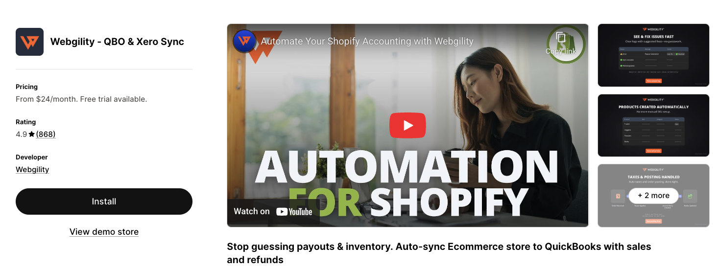 If you are scaling beyond your web store, Webgility QuickBooks Online Connector takes ecommerce accounting a step further by syncing both Shopify and Amazon data directly into QuickBooks Online, unifying your books across multiple sales channels. It automatically brings in orders, refunds, marketplace fees, FBA/3PL inventory adjustments, and shipping specifics so you can see real profits without manually stitching data together. This connector is ideal for sellers who want complete visibility across channels without juggling spreadsheets or separate exports. With customizable rules and real-time sync, you get accurate financials faster, streamline reconciliation across platforms, and make better decisions backed by reliable channel-level reporting.