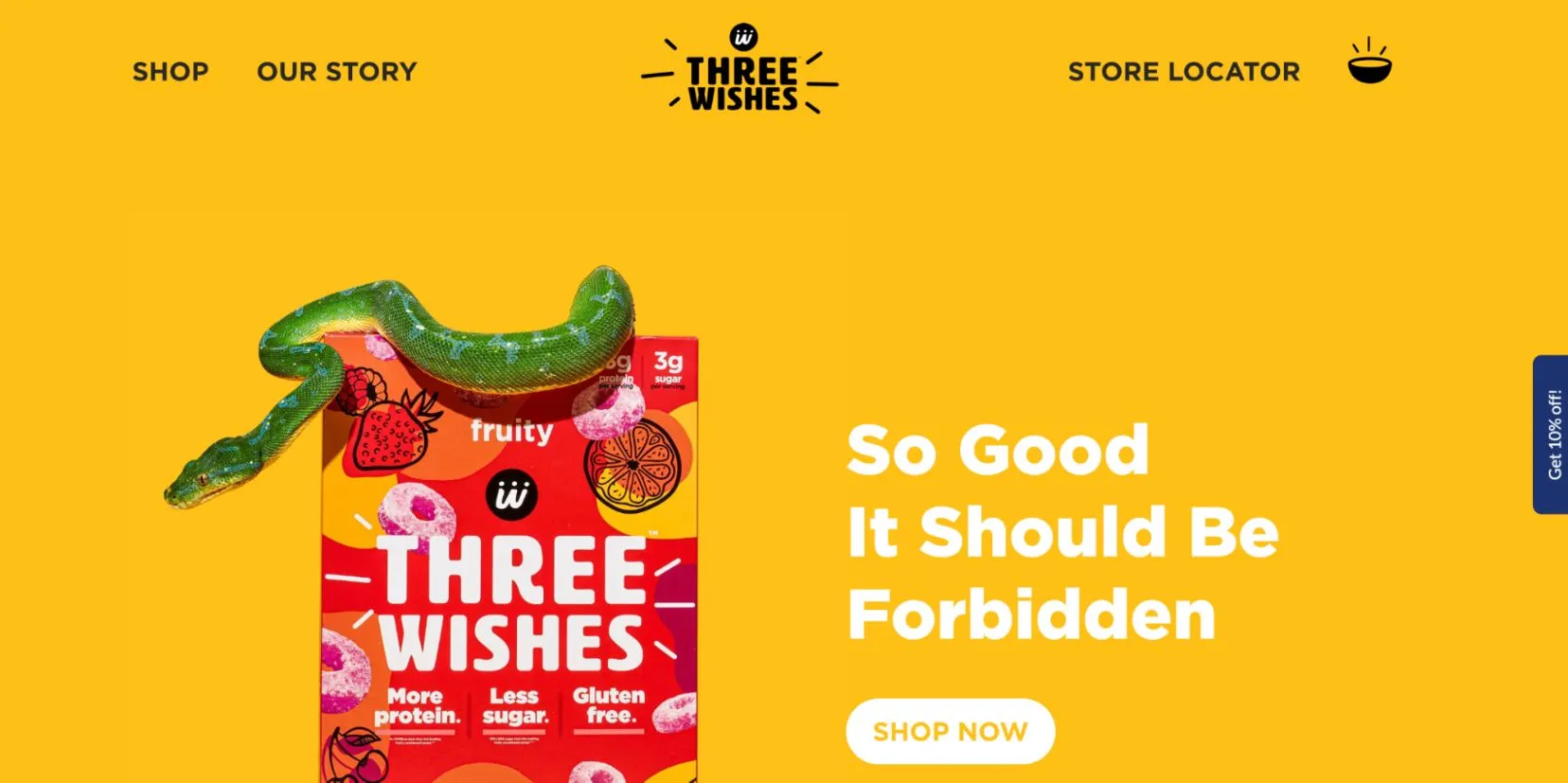 Three Wishes is a cereal brand that creates gluten and grain-free cereal. Their overall voice has a humorous edge to it, as we see in their product descriptions and on their social media posts.