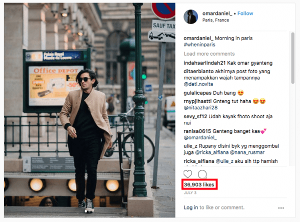 Omar Daniel is an Indonesian fashion influencer. Notice the comments are in the Indonesian language, and the high number of likes.