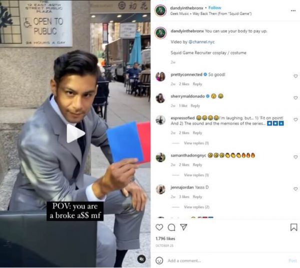 After SuitShop sent influencer @dandyinthebronx a complimentary suit for a new campaign, it inspired a “Squid Game” Instagram post—at no additional cost to SuitShop.