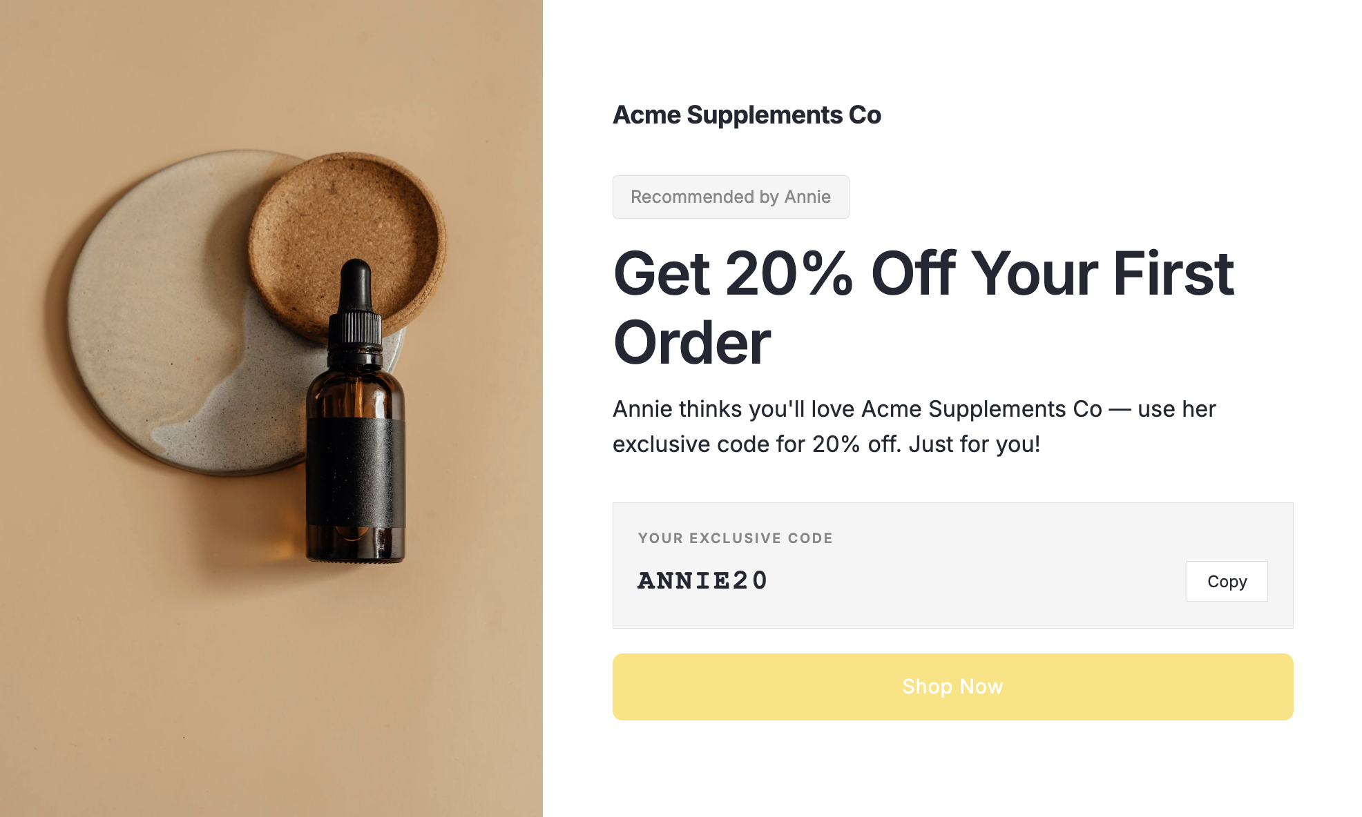 Someone just clicked a referral link from a friend they trust. They're curious. They're warm. And the first thing they see is... a plain white page with a discount code and a button.