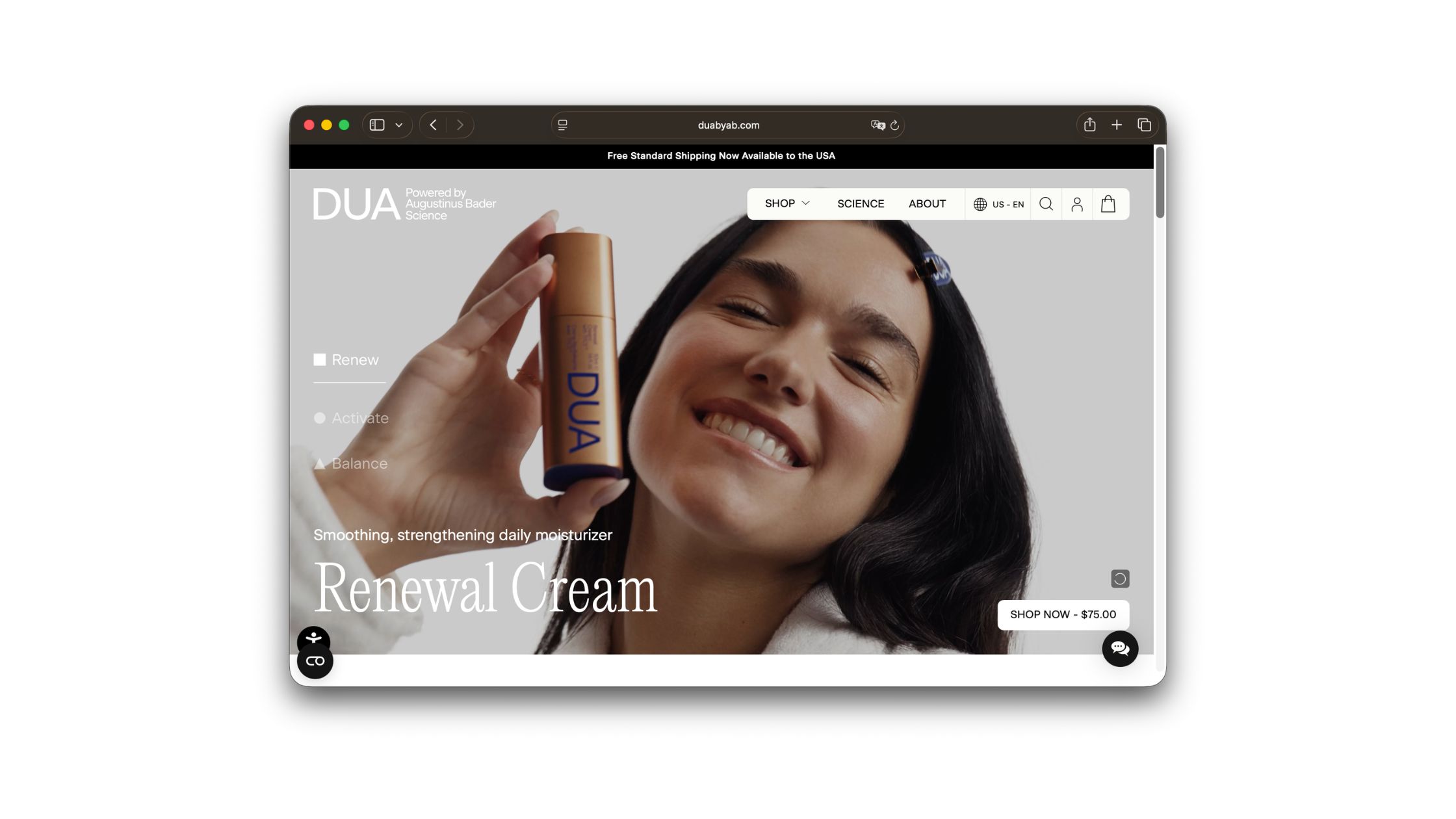 Dua Lipa's skincare line, built with Augustinus Bader — one of the most clinically-respected houses in biotech skincare. Three products: a cleanser, a glow serum, and a moisturizer, using a reworked version of Bader's signature technology tuned for skin between 18 and 35. It's a bridge from prestige biotech into a younger audience, not a celebrity licensing deal bolted onto an existing formula. The referrals run symmetrical: the friend gets 10% off their first order, and once they shop, the referrer gets 10% off their next.