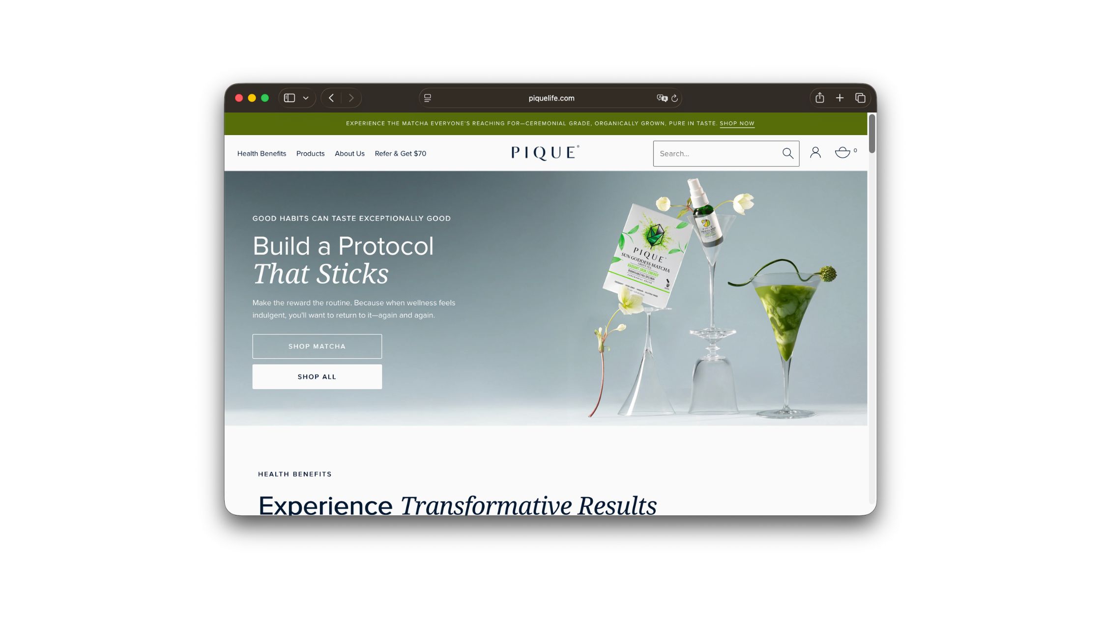 Pique is tea taken seriously — premium-sourced blends, specialty formats like liposomal vitamin C, and a customer base that reads ingredient labels for fun. It's the tea brand for people who want the wellness benefits without fussing over leaves, kettles, and steep times. Referrers earn a $70 credit and the friend receives a complimentary sample pack — a smart pairing, because in tea the thing that actually converts isn't a discount code, it's putting the product in someone's cup.