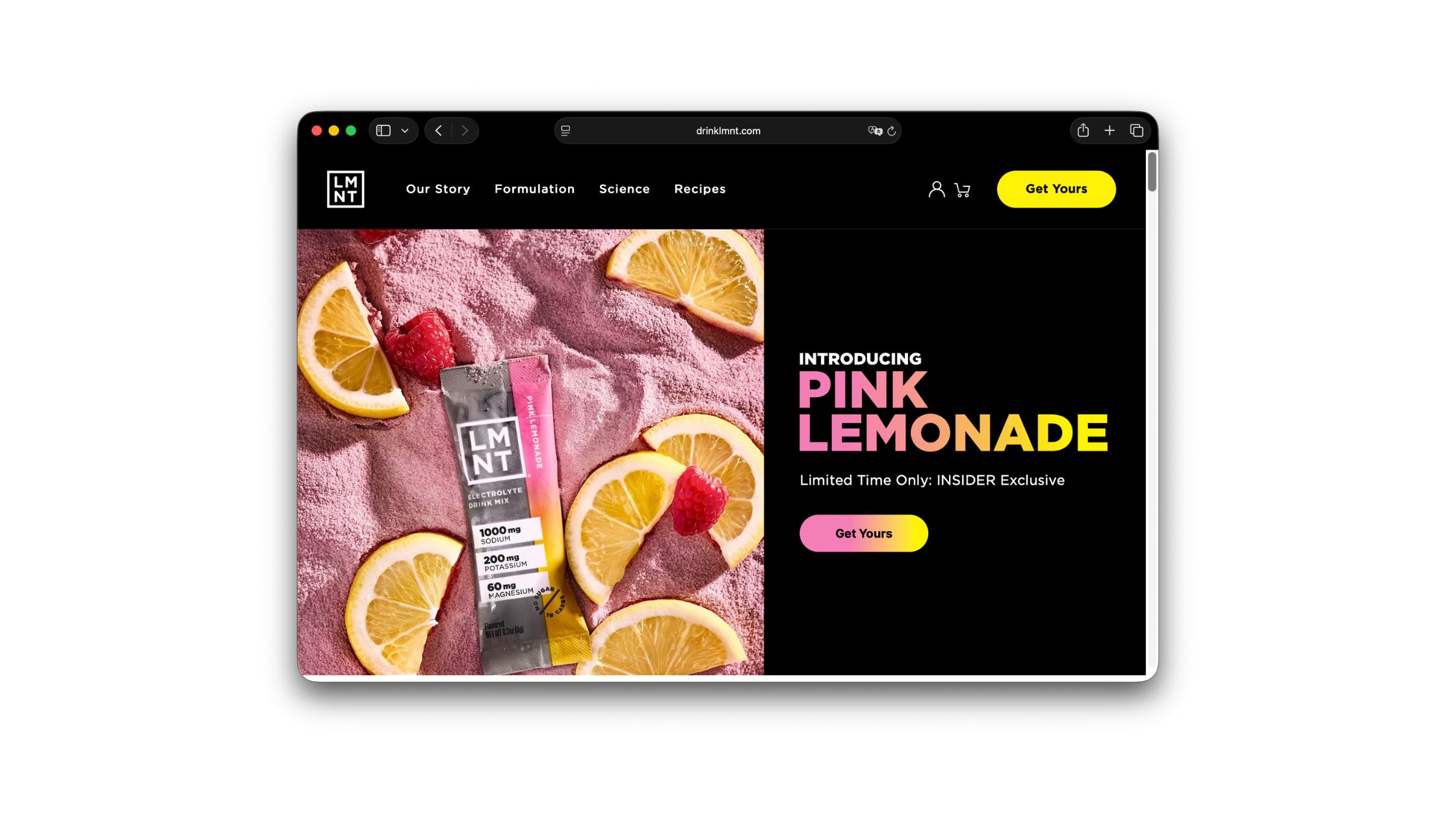 Zero-sugar electrolyte mixes, co-founded by ancestral-health figure Robb Wolf. LMNT's audience sits in the keto, endurance, and sauna-obsessed corners of the internet — people who treat electrolyte replenishment as part of a routine rather than an afterthought. The brand's growth has been almost entirely peer-to-peer, with customers handing out sample sticks at the gym and the trailhead long before any program existed. The referral reward is a free box when a friend buys through the invite link — product-as-reward, which fits a brand whose customers were already doing the recommending for free.