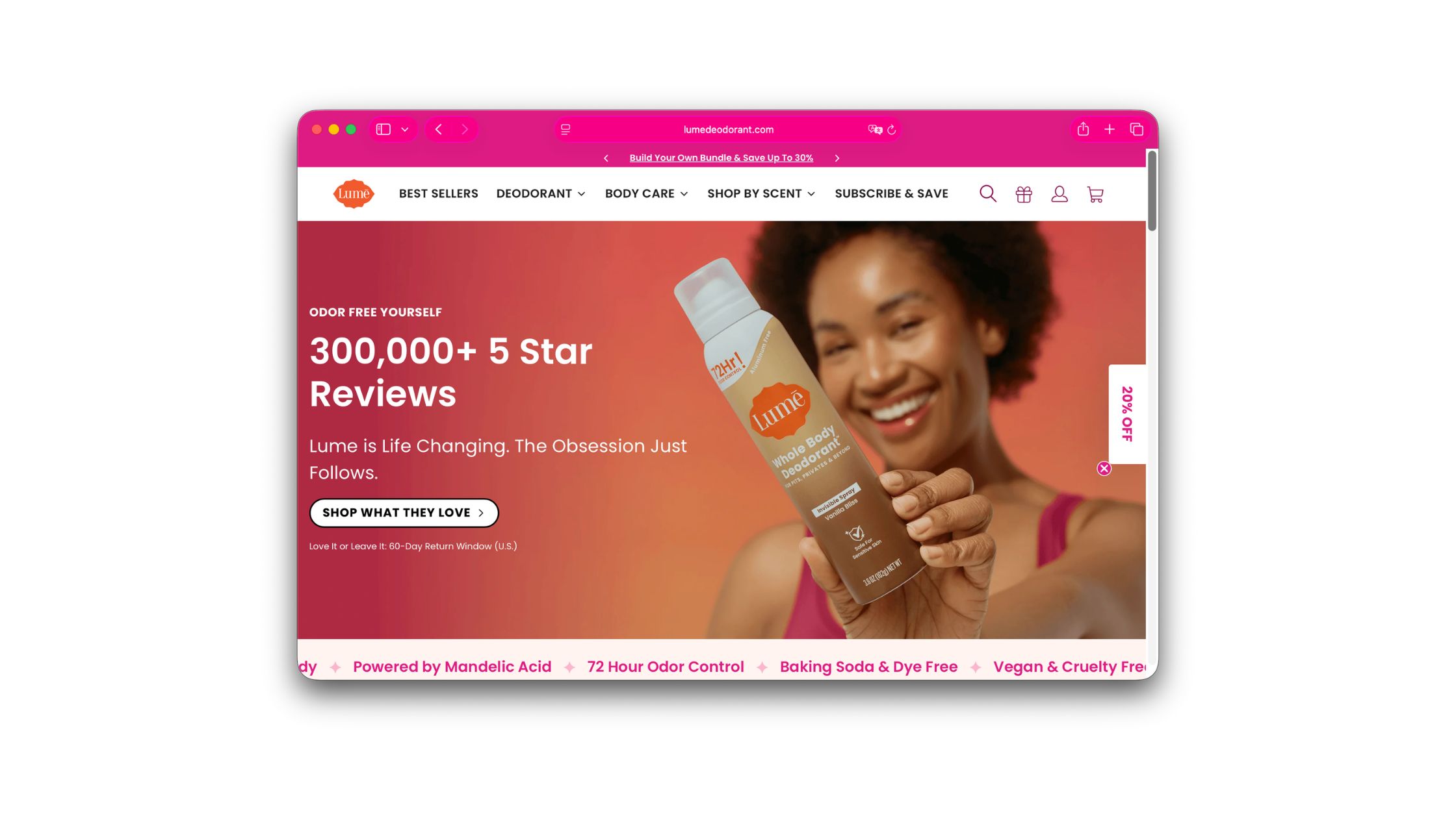 A whole-body deodorant that's refreshingly direct about body odor in a category that usually isn't. Lume was built to work on areas traditional deodorants ignore, with a formulation calibrated for sensitive skin, and an ad voice that meets the awkwardness of the topic head-on rather than dressing it up. It earned a following because customers felt spoken to rather than sold to. The referral gives the friend $5 off their first order (on purchases of $25 or more) and the referrer a $5-off coupon on their next.