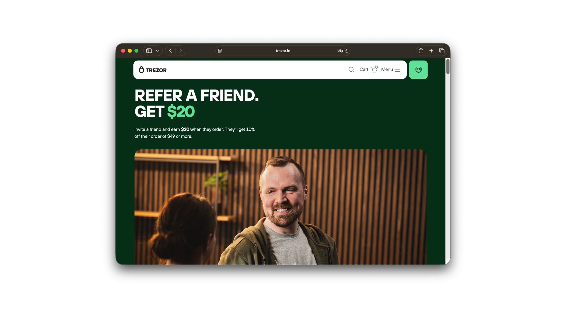 Trezor created the hardware wallet category — the original open-source, Czech-built answer to the self-custody problem that every serious crypto holder eventually runs into. More than a decade later, the brand still carries a quiet credibility earned by being early and being right. Friends get 10% off their first $49+ purchase; referrers earn $20 in Trezor vouchers per qualifying purchase, capped at 50 friends and $1,000 per year. Big enough to reward real community builders, structured enough that it doesn't become a farming scheme.