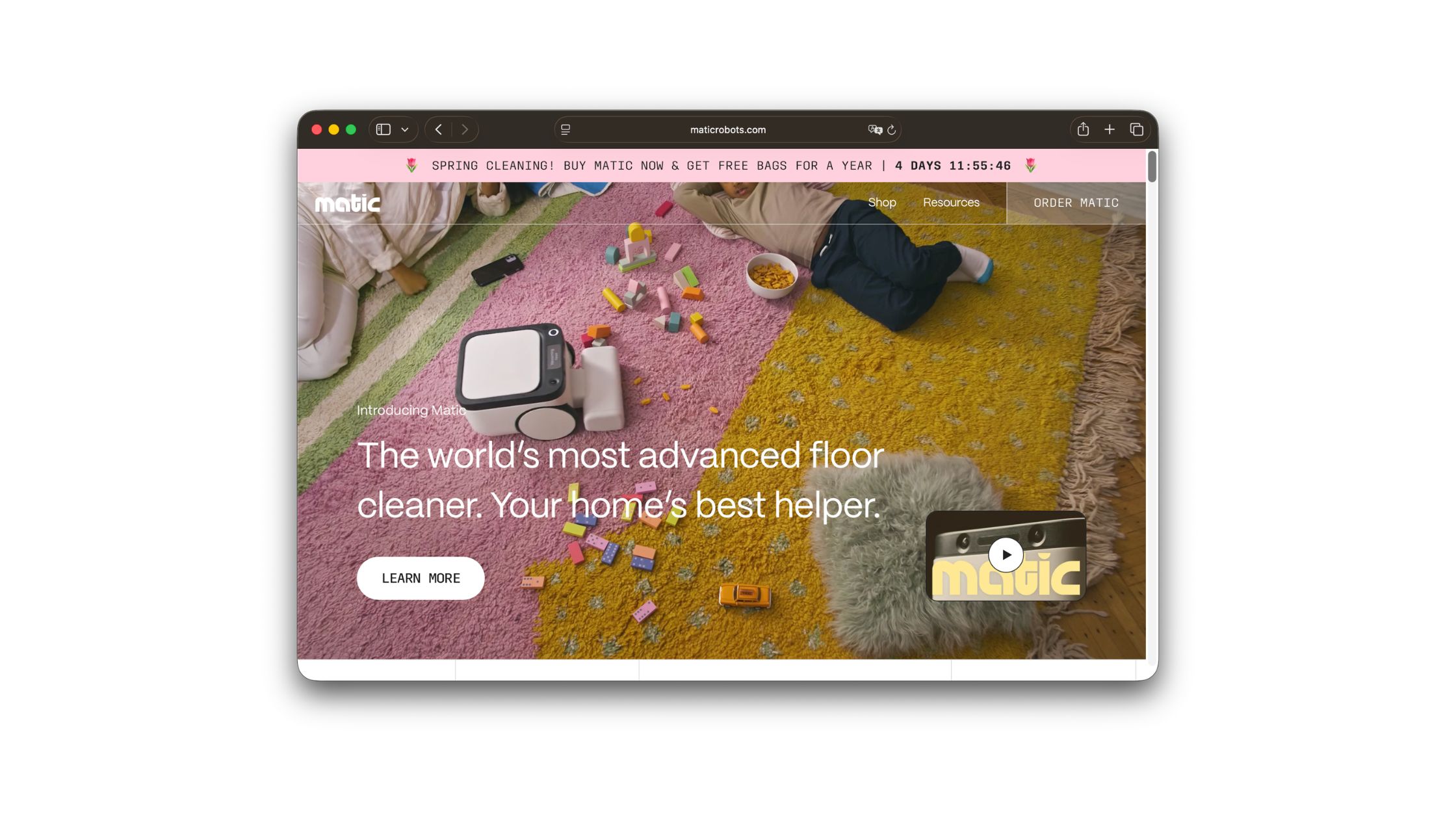 A robot vacuum and mop built with a different philosophy than most of the category — a premium-hardware sensibility in a space that's become crowded with commodity devices. The brand is for people who want a robot cleaner that holds up to scrutiny rather than one that races to the bottom on price. Referrers earn $50 in store credit for every friend who buys Matic through their link, and the friend gets a free Annual Bag Pass. Pairing cash-equivalent credit with a consumable gift is a clean move in high-ticket hardware, where the first-year experience is what turns a buyer into an evangelist.