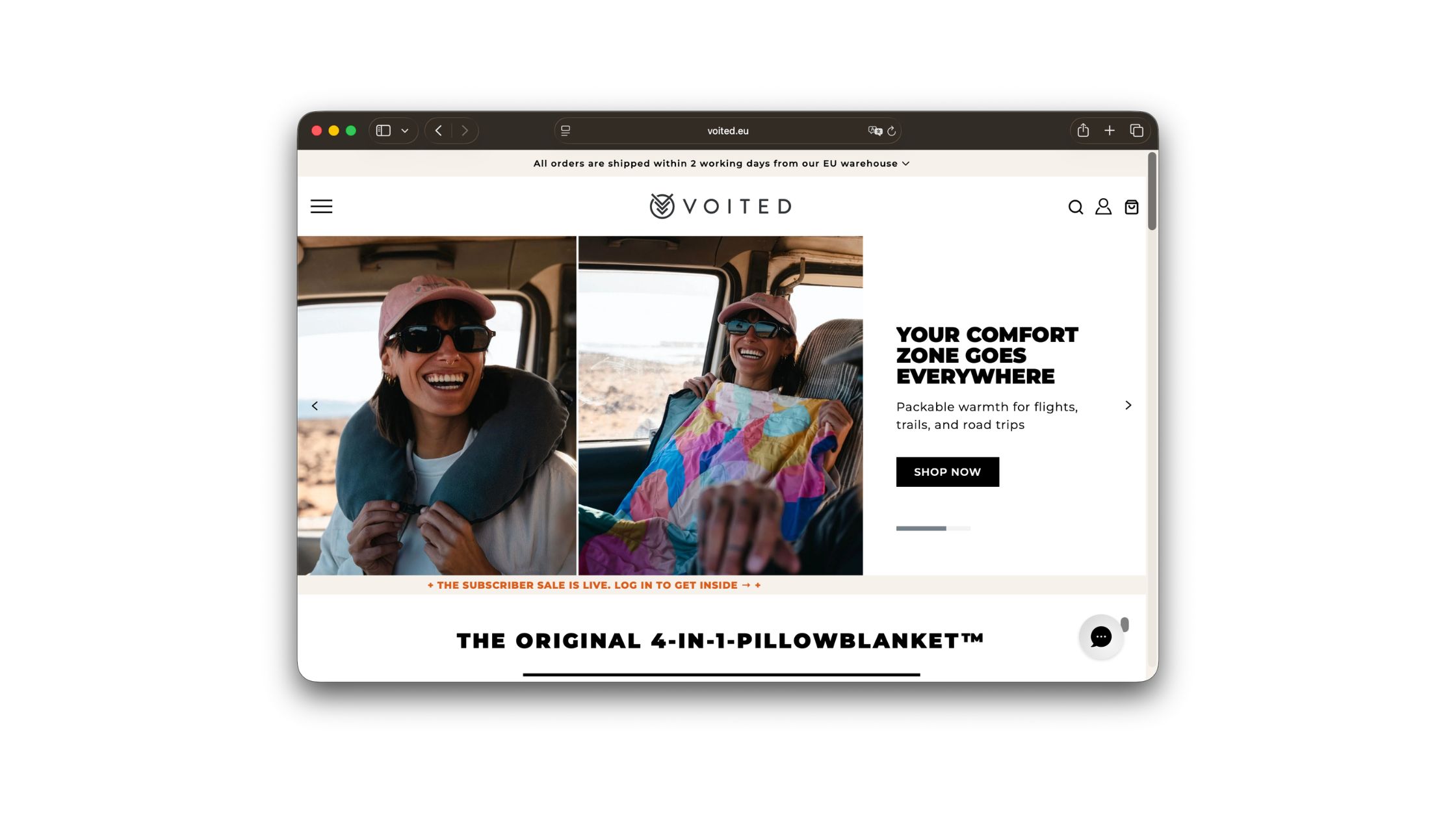 VOITED makes the in-between gear — the 4-in-1 PillowBlanket, the changewear ponchos, the apparel and accessories for people whose relationship with the outdoors isn't seasonal. It's designed for campsites, van meetups, cold-water swims, and whatever happens in the parking lot afterward. The kind of brand whose gear gets photographed in use more often than on a shelf. Friends get 15% off, and the referrer gets 10% on their next purchase. Tilting the reward toward the new buyer is smart for a brand whose first purchase is usually the one that makes the customer fall for it.