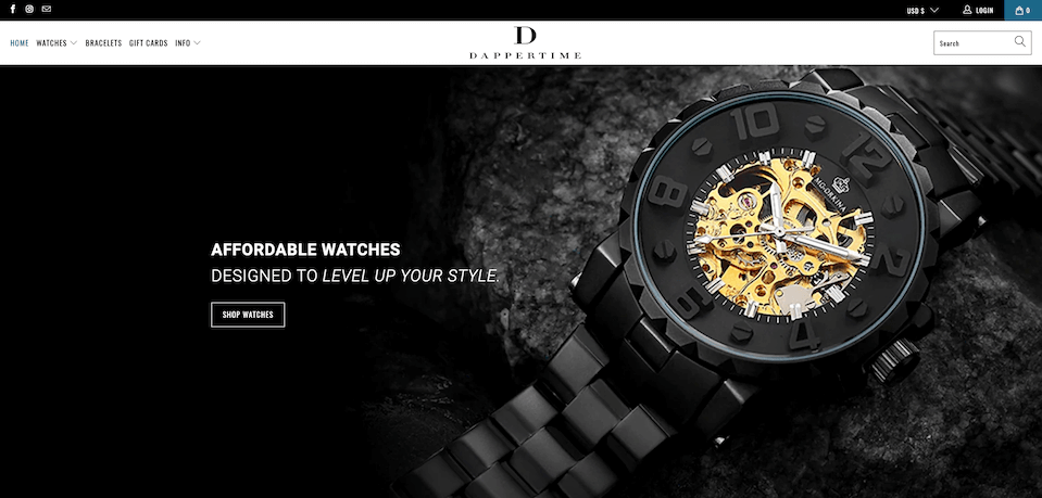 DapperTime sells stylish watches, bags and accessories catered mainly for men.